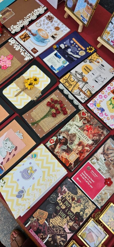 We make handmade greeting cards, vintage frames, albums, diaries, bookmarks, and other paper-based products. Each piece is made with care, keeping in mind that it is not just a product, but a memory for someone.